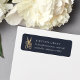 Les étiquettes d'adresse de retour chic en bleu marine riche comprennent une paire de ciseaux styliste en feuille d'or imitation ornée de fleurs, ainsi que les détails de votre adresse de retour en lettres blanches classiques.