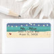 Pour la fête de lancement de cet été ou d'autres fêtes estivales, voici une jolie illustration de plage avec des lampes à cordes, un petit crabby, et les empreintes minuscules d'un oiseau du rivage. Rien ne dit "été" comme la plage, et les invités de votre fête d'été sauront sûrement que vous avez votre ambiance de plage, dès qu'ils mettent les yeux sur l'enveloppe.