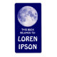 Un étiquette de bibliothèque avec une photo de la Lune, entrez votre nom pour customiser. Peut également être customisé plus loin.