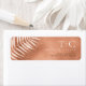 Une palette de couleurs tendance dans les tons terre cuite, cuivre et rouille, des cadres géométriques étincelants et des aménagements design élégants, constituent la base de cette suite mariage passionnante. Que vous planifiez un mariage de destination ou que vous séjourniez à proximité de chez vous, cet ensemble délicat en feuille de palme fait un choix attrayant. Le étiquette de adresse mariage indiqué ici, fournit un modèle pour ajouter facilement vos propres initiales, noms et adresse. Recherchez ID956 pour voir d'autres pièces et choix de couleurs pour cet ensemble.