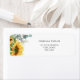 Ceci est une étiquette d'adresse de retour de mariage champêtre moderne et rustique sur le thème du tournesol pour célébrer la future mariée ! En utilisant un design de fleurs de tournesol champêtres et de feuilles d'eucalyptus, modifiez le texte selon vos besoins en utilisant le modèle fourni.