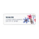 Une faire-part de mariage chic et fraîche avec des fleurs blanches peintes à la main rose et violet sur un arrière - plan bleu marine agrémenté d'écriture or calligraphie moderne. Design original par Kitty Pie Prints.