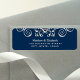 Élégantes étiquettes d'adresse de retour avec un beau design florissant contre un arrière - plan bleu marine.