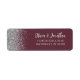Le bord gauche de cette élégante étiquette d'adresse de retour mariage moderne présente une fausse parties scintillant argentée. Le texte personnalisable associe écriture gris argenté et fontes sans serif sur un arrière - plan rouge bordeaux foncé.