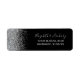 Le bord gauche de cette élégante étiquette d'adresse de retour mariage moderne présente une fausse parties scintillant argentée. Le texte personnalisable combine écriture gris argent, copperplate et polices italiques sur un arrière - plan noir.