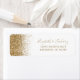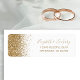 Le bord gauche de cette élégante étiquette d'adresse de retour mariage moderne présente une conception de parties scintillant en faux or. Le texte personnalisable combine écriture manuscrite dorée, cuivre et polices italiques sur un arrière - plan blanc.