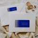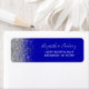 Le bord gauche de cette élégante étiquette d'adresse de retour mariage moderne présente une fausse parties scintillant argentée. Le texte personnalisable combine écriture blanche, copperplate et polices italiques sur un arrière - plan bleu royal.