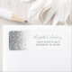 Le bord gauche de cette élégante étiquette d'adresse de retour mariage moderne présente une fausse parties scintillant argentée. Le texte personnalisable associe écriture gris argenté, copperplate et polices italiques sur un arrière - plan blanc.