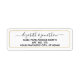 Cette étiquette d'adresse de retour mariage or moderne simple mais élégante avec une bordure d'or et un élégant script en lettres manuscrites peut être utilisé conjointement avec votre faire-part de mariage, enregistrer la date, l'invitation de la douche nuptiale, ou l'invitation de la répétition dîner. Idéal pour les mariage qui se tiennent dans un cadre simple, rustique, élégant, extérieur, grange, jardin, ferme, ou tout lieu moderne ou tendance mariage. Facile à personnaliser avec votre propre photo et informations de réception de mariage. Conception de T.K. Goforth.