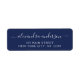 Faire-part de mariage d'adresse de retour moderne et élégante Marine Bleu et Blanc Script Typographie qui est parfait pour une Carte de séjour de Noël ou une Invitation, une Carte de séjour de Noël, une Carte de retour de la date, RSVP, Fête des mariées, Baby shower, fête d'anniversaire. Le texte de ce étiquette de typographie de script moderne écrit à la main peut être mis à jour et customisé avec votre nom et adresse. Ces Baby showers, Fêtes des mariées, Bachelorette Party par courrier, Mariage ou Retarder la date de retour Adresse Les Lâches sont parfaites pour cet événement ou cette fête qui doit être déplacé à une nouvelle date.