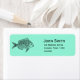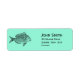 Des étiquettes de adresse personnalisés à la mode avec un design d'illustration vintage de poisson en noir contre une couleur élégante et personnalisable aqua. Le texte est entièrement personnalisable pour inclure vos propres détails personnels.