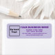 Les étiquettes d'adresse de retour sont toujours utilisées pour les enveloppes de courrier, mais elles peuvent également être utilisées comme matériel marketing pour annoncer votre entreprise ou promouvoir votre marque auprès de clients ou de clients. Étiquette d'adresse de retour monochrome violet que vous pouvez utiliser pour sensibiliser la marque. Pour customiser ce étiquette de adresse, téléchargez votre logo d'entreprise, tapez votre nom d'entreprise, votre adresse, votre numéro de téléphone, votre adresse électronique et votre site Web ou votre page de médias sociaux. Veuillez vérifier l'apparence après avoir téléchargé le logo et tapé des textes. Si l'apparence vous plaît, vous pouvez passer votre commande maintenant. Si vous avez besoin de redimensionner ou repositionner le logo et les textes, s'il vous plaît ajuster dans l'outil de conception. Vous pouvez également modifier le style de police, la couleur de police et la couleur arrière - plan dans l'outil de conception.