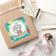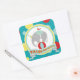 Un autocollant amusant à thème de cirque avec des pois brillants et un éléphant avec casquette d'anniversaire équilibrant sur une balle et un oiseau rouge avec casquette d'anniversaire.