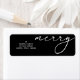 Give your holiday envelopes a polished, designer finish that sets them apart! These sophisticated return address labels feature the single, elegant greeting "Merry" written in a flowing fancy script font. The high-contrast look—crisp white text set against a sleek, plain black background—instantly conveys refined style. Best of all, you can easily personalize each label with your own name and address, transforming a necessary mailing detail into a chic, festive accessory. Perfect for sealing cards or customizing invitations with effortless elegance this season.