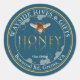 Votre nom de chapiaire est affiché dans une bordure incurvée le long de la partie supérieure du étiquette avec l'emplacement le long de la partie inférieure du étiquette. Le mot HONEY est écrit dans une police métallique en or biseauté et le texte est réfléchi et estompé sous le mot. Le poids net du miel apparaît sous le étiquette en onces et en grammes. Une abeille dorée stylisée et un délicat motif de nid d'abeille entourent le mot HONEY.