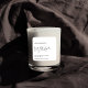 Étiquette à bougie blanche avec design minimal et typographie de script simple et élégante.