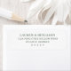 Cette étiquette d'adresse de retour présente un design épuré et minimaliste avec un texte centré sur fond blanc. La police serif classique ajoute une touche d'élégance, tandis que la palette de couleurs noir et blanc crée un look intemporel. Parfaite pour les occasions formelles, cette étiquette offre des champs personnalisables pour les noms et les adresses, assurant une apparence personnalisée et sophistiquée. Sa composition simple met l'accent sur la clarté et la finesse, ce qui la rend idéale pour les mariages ou autres événements spéciaux.