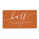 Une étiquette d'adresse de retour orange brûlée, audacieuse et élégante, portant un nom de famille de script moderne et un texte d'adresse de serif classique. Parfait pour les mariages d'automne, papeterie d'automne, mailings de Thanksgiving, ou utilisation quotidienne avec une touche de chaleur. Le riche arrière - plan orange brûlé ajoute une touche contemporaine mais cosy aux enveloppes, aux cadeaux et aux invitations.