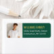 Le design moderne personnalisé étiquette de adresse comprend une photo de graduation du diplômé avec l'or et blanc adresse de retour texte et arrière - plan vert. Customisez le texte et l'arrière - plan pour coordonner avec la photo ou les couleurs de l'école!