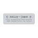 Mariage moderne, chic et simple étiquette d'adresse de retour avec vos noms dans la typographie moderne hors-noir sur un arrière - plan bleu pastel avec une touche de coeurs dessinés à la main. Ajoutez simplement vos noms et votre adresse. Conçu exclusivement pour vous par Happy Dolphin Studio.