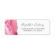 Le bord gauche de cette élégante étiquette d'adresse de retour mariage moderne comporte une bordure d'aquarelle rose ornée d'une parties scintillant en faux or. Le texte personnalisable combine écriture manuscrite et police de caractères cuivre en gris charbon sur un arrière - plan blanc.