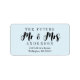 Une étiquette d'adresse de retour bleu clair simple et élégante pour le futur M. et Mme en typographie manuscrite. Élégante étiquette d'adresse de retour pour mariages, douches nuptiales, fiançailles ou tout autre envoi avant votre jour de mariage.