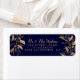Complétez votre suite avec cette adresse mariage retour avec un mélange entre le style moderne et vintage avec une branche botanique en feuille d'or jaune peinte à la main avec des feuilles et des fleurs sur un arrière - plan bleu marine modifiable.