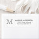 Le design comprend un monogramme personnalisé, le nom et l'adresse dans une police typographique simple et moderne.