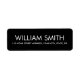 Élégantes étiquettes d'adresse de retour avec champs modèles pour votre nom et adresse. Texte blanc sur un arrière - plan noir.