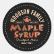 Ce étiquette n'est pas pour les faibles de coeur. Audacieux, foncé et rustique, il dessine l'image d'un chaudron de sève bouilli sur un vieux poêle à bois dans un hangar. L'emblème de la feuille d'érable orange montre la qualité tandis que le sirop d'érable est écrit dans une police décorative rustique, et les polices sont dans un texte jaune pâle et de couleur sirop d'érable. Modifiez ce étiquette décontracté de sirop d'érable en ajoutant votre nom d'entreprise, votre adresse, le volume de sirop d'érable et votre qualité.