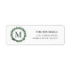 Adresse de retour de Noël festive avec une feuille verte encadrant votre set initial sur un arrière - plan blanc classique.