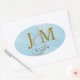 Étiquette Monogramme Aquarelle Bleu Aqua