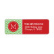 Étiquette Monogramme Chevron rouge et vert