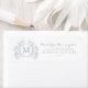 Étiquette de monogramme classique bleu Dusty Floral Crest