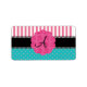 Bandes roses et blanches motif et turquoise/turquoise/aqua diamant pois arrière - plan, rose rose motif cercle pétoncle et diamants noirs (faux diamants, pas réels) bande et monogramme changer à une lettre a, b, c, d, e, g, h, i, j, k, l, m, o, p, q, r, s, t, u, v, w, w,x, y, z Idéal pour les mariages mariés et mariés, wedding showers, douches fiançailles, fête de fiançailles, anniversaire, enregistrer la date, fête de bachelorette, anniversaires et bien plus encore avec une élégante et traditionnelle lettre