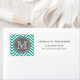 Cool mignon géométrique tendance turquoise bleu, gris et blanc zigzag chevron motif avec plaque d'identification grise pour votre lettre initiale monogramme personnalisée. Chic monogrammed étiquette de adresse moderne.