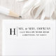 Une simple étiquette d'adresse de retour avec monogramme initial classique et nom de famille et adresse.