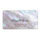This elegant luxury business card features an iridescent mother-of-pear design and an elegant handwritten script.