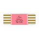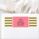 Étiquette d'adresse de retour en or métallique et motif rayé rose. Le design est composé d'un motif rayé blanc et or métallique et d'un rectangle rose avec vos informations personnalisées.