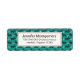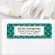 Étiquettes de adresse conçus avec un motif extensible avec un mignon chien souriant avec un os. Arrière - plan vert.. Une plaque blanche avec une bordure noire superposée avec votre nom et votre adresse à l'intérieur.