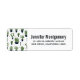 Étiquettes de adresse à la saveur occidentale rustique. Conçu avec un tas de cactus verts mignons dans un motif extensible. Plus précisément, des cactus épineux de couleur verte, de toutes sortes de formes et de tailles, chacun assis dans son propre pot de fleurs bleu foncé. Des petits triangles décoratifs entre eux. Illustration de fantaisie.