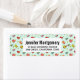 Retourner les étiquettes d'adresse avec un motif d'oiseaux lunaires dessinés à la main. De mignons petits pins verts les séparent.