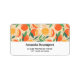 Étiquettes de adresse à l'ambiance rétro. Un motif composé d'oranges tranchées, d'oranges entières, de feuilles verts et de fleurs blanches.