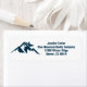 Une société immobilière de chaîne de montagnes cool a envoyé l'étiquette d'adresse pour une entreprise immobilière située dans une ville ou une ville montagneuse. Le nom du royaume est écrit en écriture bleu marine sous la maison au milieu des montagnes. Excellent article de marketing pour un constructeur de maisons en montagne.