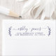 Étiquette d'adresse de retour chic, moderne et simple mariage avec vos noms en bleu marine élégante calligraphie manuscrite avec une touche élégante de feuillage rustique sur un arrière - plan blanc. Ajoutez simplement vos noms et votre adresse. Conçu exclusivement pour vous par Happy Dolphin Studio. Si vous avez besoin d'aide ou de produits correspondants, veuillez nous contacter à happydolphinstudio@outlook.com . Nous sommes heureux de vous aider à faire de votre mariage la plus belle journée!