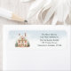 Étiquette de adresse de la carte de Noël. Jolie maison couverte de neige avec décorations de Noël.