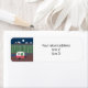 Ces étiquettes d'adresse de retour de Noël ont un tout petit campeur RV au camping au bord de la rivière. Il y a une couronne de vacances à la porte du camping-car. Il y a des montagnes et une pinède dans l'arrière - plan. Ajoutez votre adresse de retour.