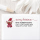 "Christmas Gnome Aquarelle Joy Script Typographie Retourner l'adresse étiquette." Adorable couleur aquarelle peinte à la main gnome contient une typographie "JOY" avec une bannière avec un script rouge "Joyeux Noël" message. Vos coordonnées sont facilement personnalisées à l'aide des champs modèles. Art par Audrey Jeanne Roberts, artiste de renommée internationale et titulaire de licence, copyright.