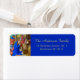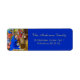 Étiquettes d'adresse de retour de Noël créées avec une image manuscrite illuminée médiévale. Cette Vintage illustration religieuse de Noël représente la Scène de la Nativité : le Bébé Jésus dans le Manger de Bethléem, la Bienheureuse Vierge Marie, Saint Joseph, les animaux et les Bergers qui sont venus adorer Notre Seigneur Jésus Christ. Vous pouvez personnaliser avec votre adresse. Grand or bleu élégant chrétien catholique Noël Noël vacances retour étiquettes d'adresse pour vos cartes de Noël et invitations enveloppes. Joyeux Noël!