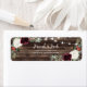 Cette étiquette d'adresse de retour de mariage en bois de Noël rustique est le complément parfait à vos invitations de mariage de Noël, à l'exception des dates ou des invitations de douche nuptiale. Le design présente de belles fleurs d'aquarelle blanche et bordeaux avec une végétation de pins, de baies saintes et d'eucalyptus. Personnalisez avec votre nom et votre adresse.